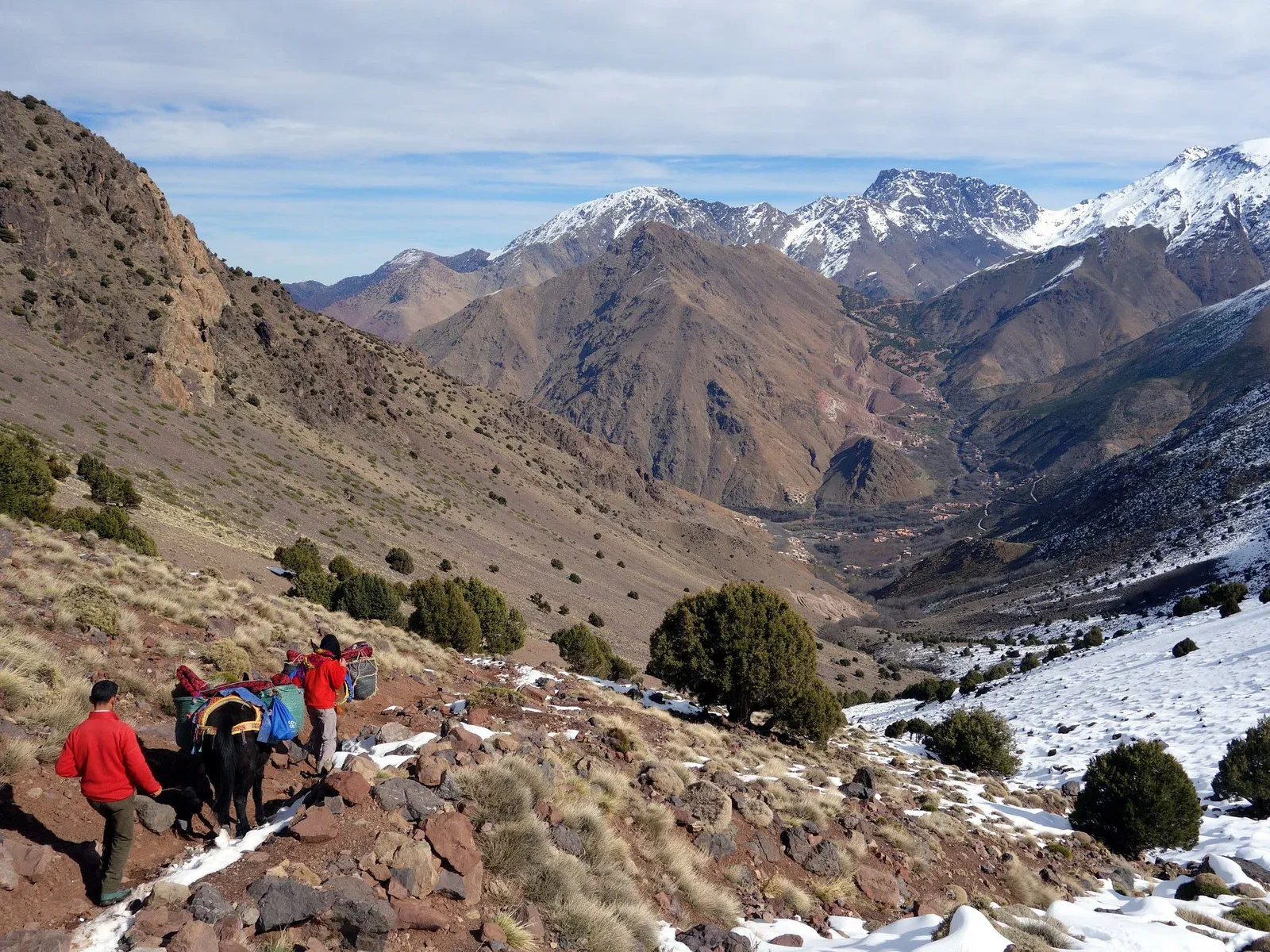 From Marrakech, you travel toward the foothills of the Atlas Mountains, passing through scenic roads, river valleys, and Berber villages before reaching the starting point of the trek.